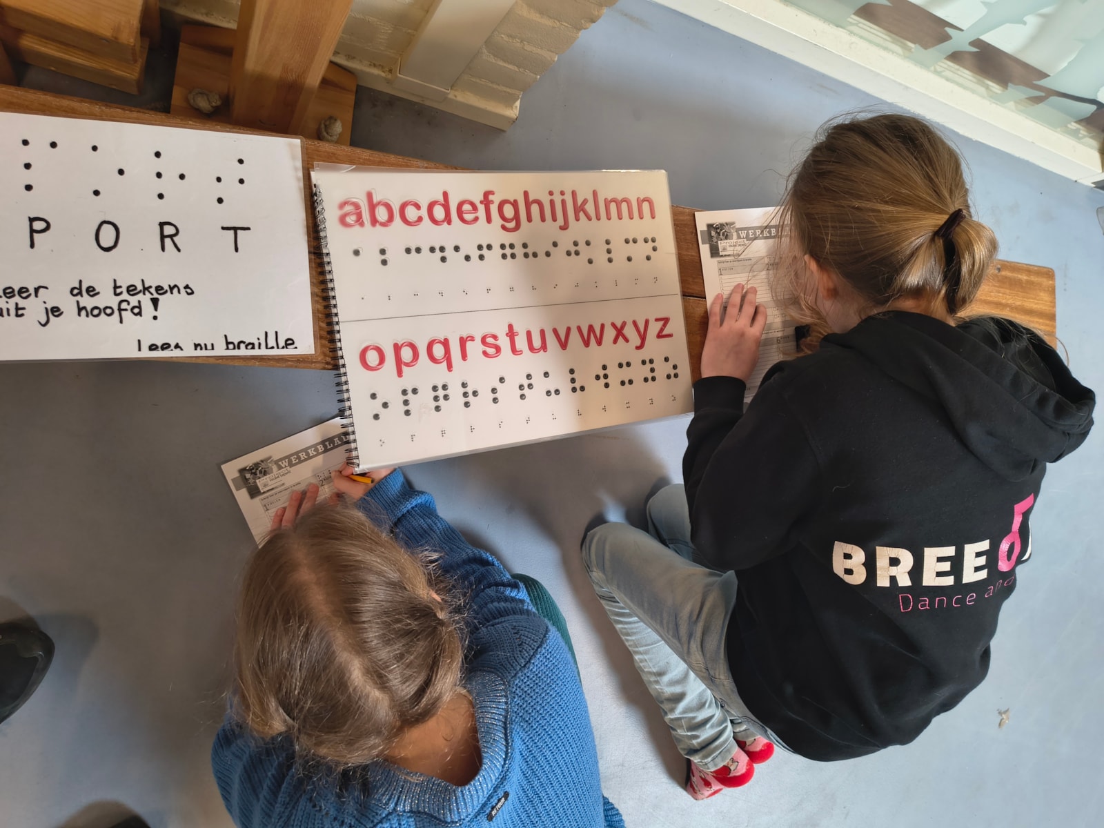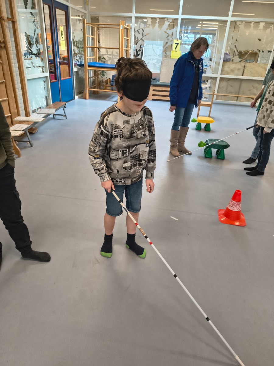 Op dinsdag 17 februari kwamen er vanuit Sportservice twee dames om onze leerlingen informatie te geven over hoe het is om blind te zijn. Eerst werd er een indrukwekkend verhaal verteld over hoe één van deze dames plotseling blind werd en daarna kregen de kinderen te horen hoe er met handige tools toch heel veel zelfstandig mogelijk is. Daarna was het voor de kinderen zover: Zélf ervaren hoe het is om blind te zijn. Er werd gewandeld met een blindegeleidestok, er werd braille gelezen, de andere zintuigen werden geprikkeld. Geniet mee van de foto’s.