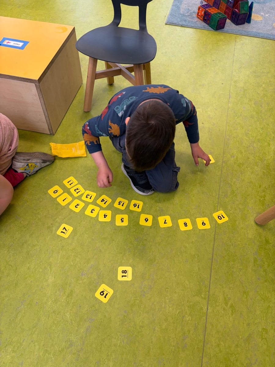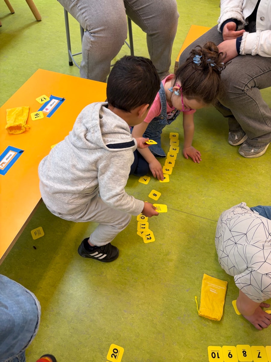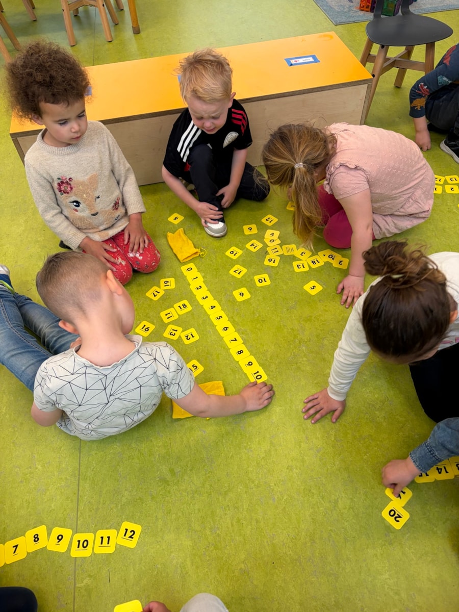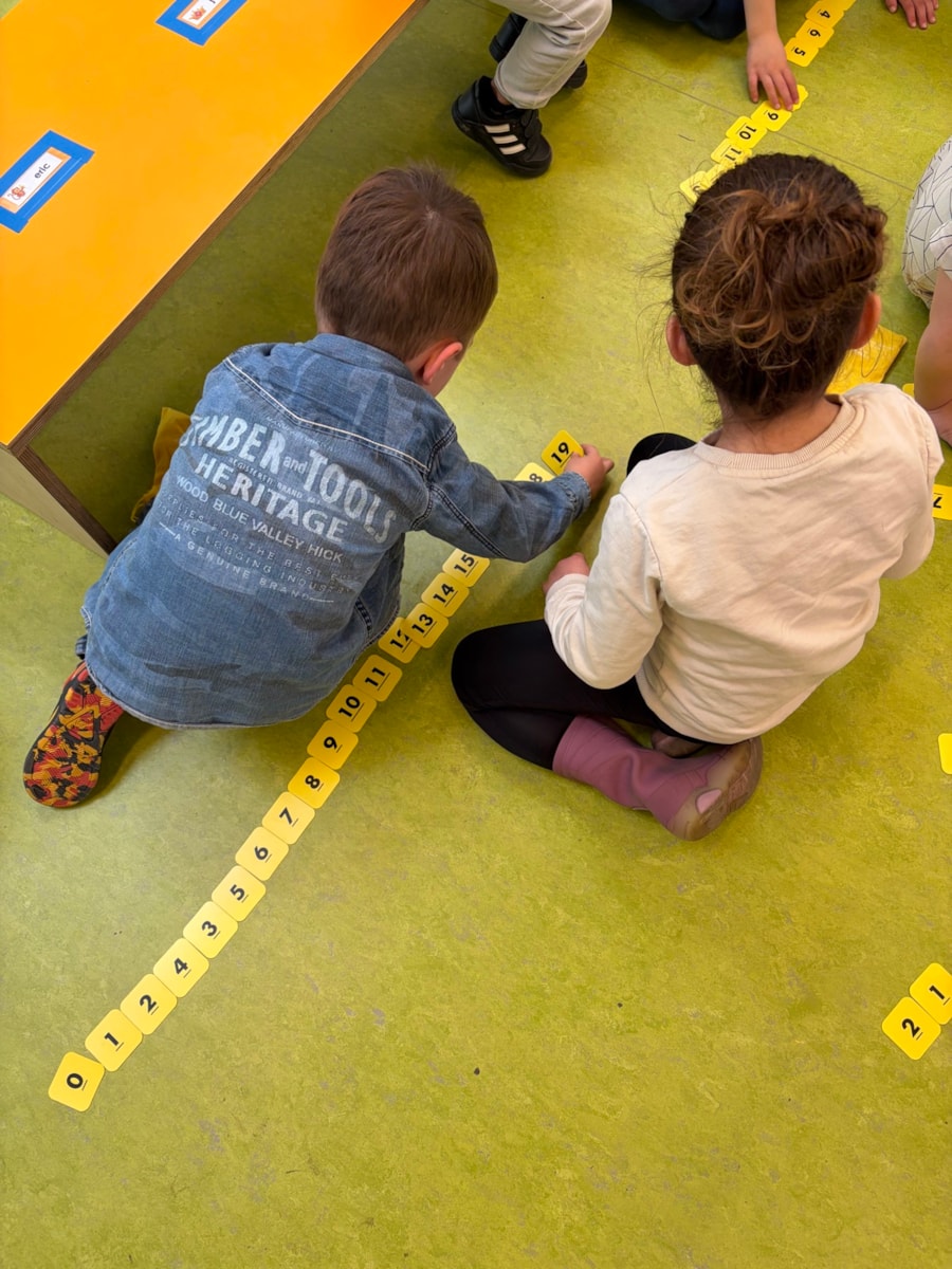 Vandaag hebben wij het spel “de schatkist” 🎲gespeeld. In tweetallen hebben de kinderen de getalbeelden tot 20 op volgorde gelegd. Daarna moesten de kinderen het aantal gouden blokjes tellen 🪵 in de schatkist. Als de kinderen het goed raden mogen zij het juiste getal op hun getallenlijn omdraaien. Op deze manier leren de kinderen getalbeelden en hoeveelheden aan elkaar koppelen. 🥳